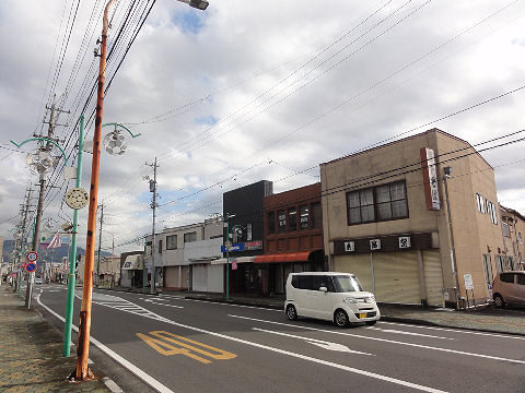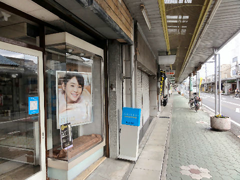 屋根の掛かった歩道の商店街シャッター通りにはなっていないが締めている店もちらほら。 |