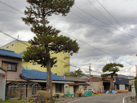 くねくね曲がり進むところどころに松が残っている。 |