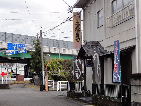 うなぎ屋の先で国道を越える |