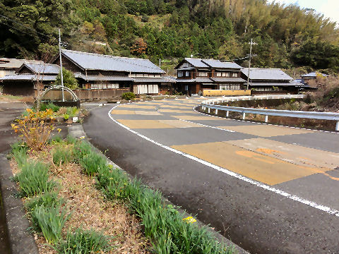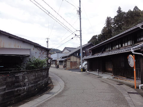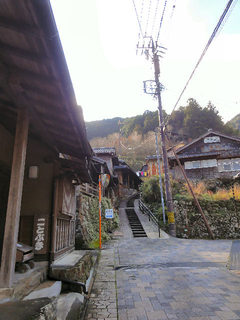 集落の坂道を下る |