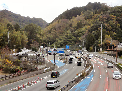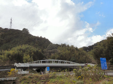 歩道橋の下がトンネルの入口2車線のトンネルが上りと下りでそれぞれ1本。歩道橋を右から左へ渡ってきた。 |