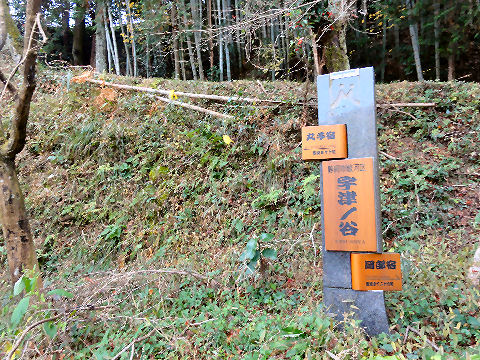 宇津ノ谷の集落入口階段を下って宇津ノ谷の集落へ入ってゆく。 |