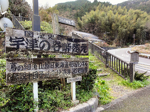 宇津ノ谷を一望のはずがこの眺望ポイント、前はもっと綺麗に見えたが木が伸びて見にくくなっている。 |