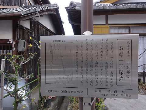 石部の一里塚説明板塚はここから70m先にあったと書いてあるが。 |