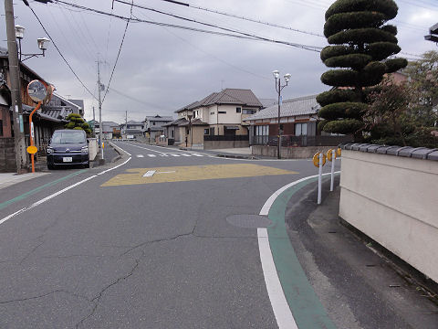 斜めに横断して進む車の来ない静かな旧道歩きに。 |