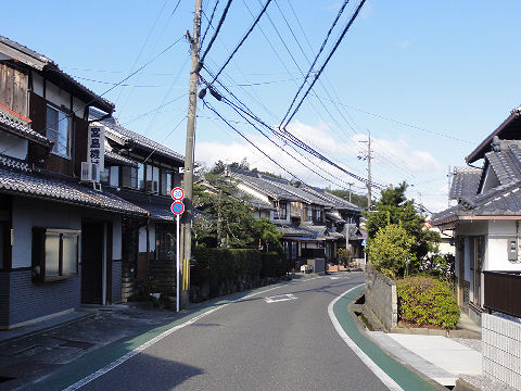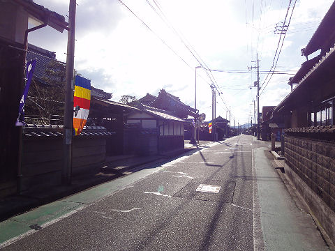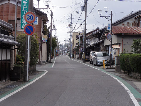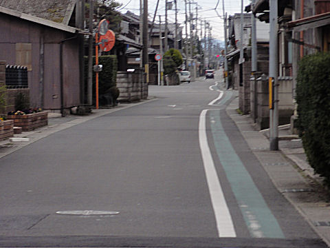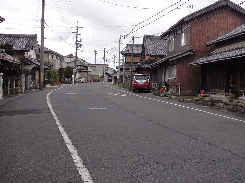 ゆったり曲がって進む旧街道特有の風景が続く。 |