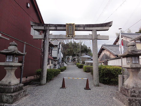 造り酒屋まだ営業前、あるいは休日で暖簾が出ていない。 |