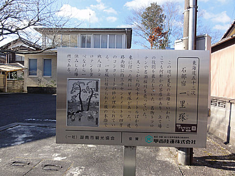 一里塚を再度見てこの説明板、ステンレスで腐らないのは良いが反射がきつく読みにくいのが難点。 |