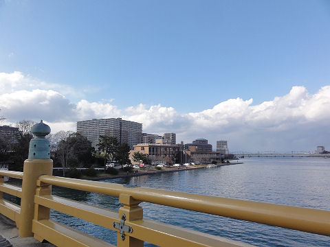 まず最初の橋手前の橋はボートコース?の上を越えてゆく。 |
