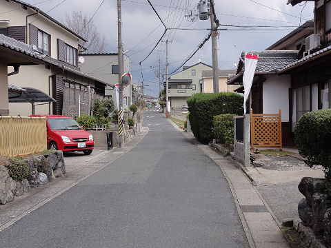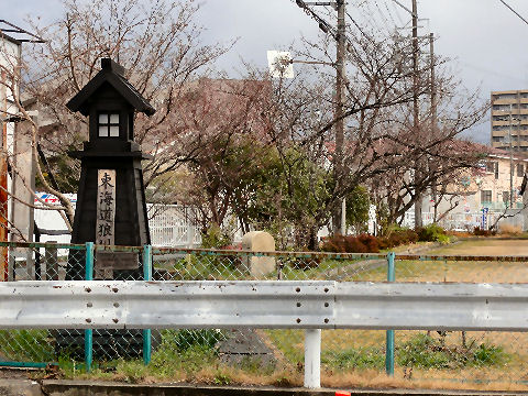 月輪池の一里塚瀬田から来る道との交差点にある。 |