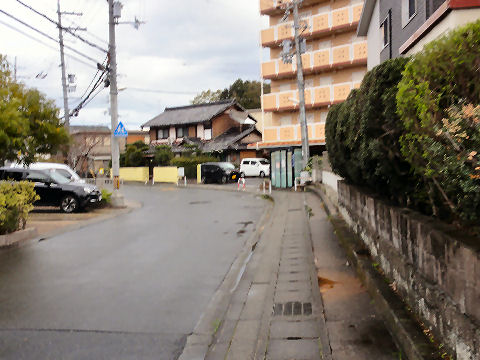 じきに左折する旧道はこのY字路の次を左折する。 |