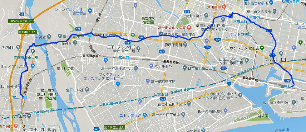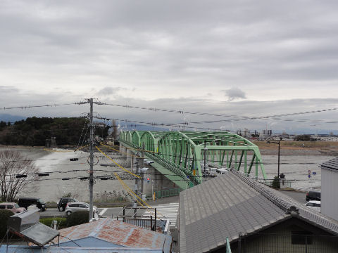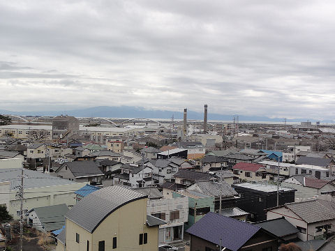 曇っているし左手には工場の大きな建物(大王製紙の子会社)があって富士山は見えそうもない。 |