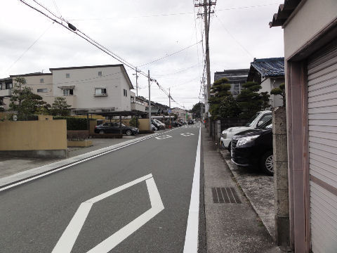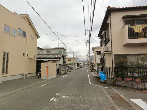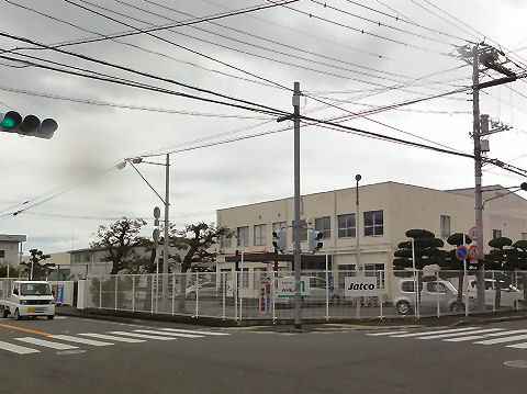 右手はJATCOの工場この敷地の南西端の先に岳南電車のジャトコ前駅があるはず。 |