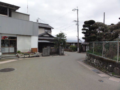 西を振り返る、ここで左の旧道へ道路は直進するが旧道は少し北側へ膨らんで外れている。 |