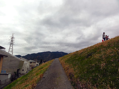 さらに東へ進む左側には雁堤が見え隠れしてくる。 |