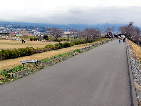 左手に見える雁堤へ登ってみる左手に登る道が有ったので堤の上へ登ってみる、ここは去年の春に桜を撮りに来た。 |