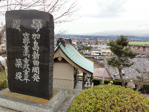 加島新田開発の記念碑新田を作るために雁堤で洪水から守ったということか。 |