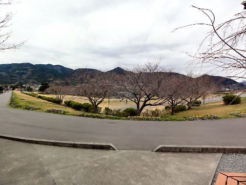 曲がった堤の先端部分休憩所とトイレ、記念碑などがある。 |