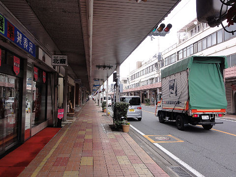 アーケードの道を右折立派なアーケードの商店街だが閉まっている店が多い。 |