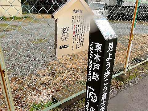 吉原宿の碑吉原宿は最初は海に近い場所にあったようだが津波などの被害で山側へ移転している。 |