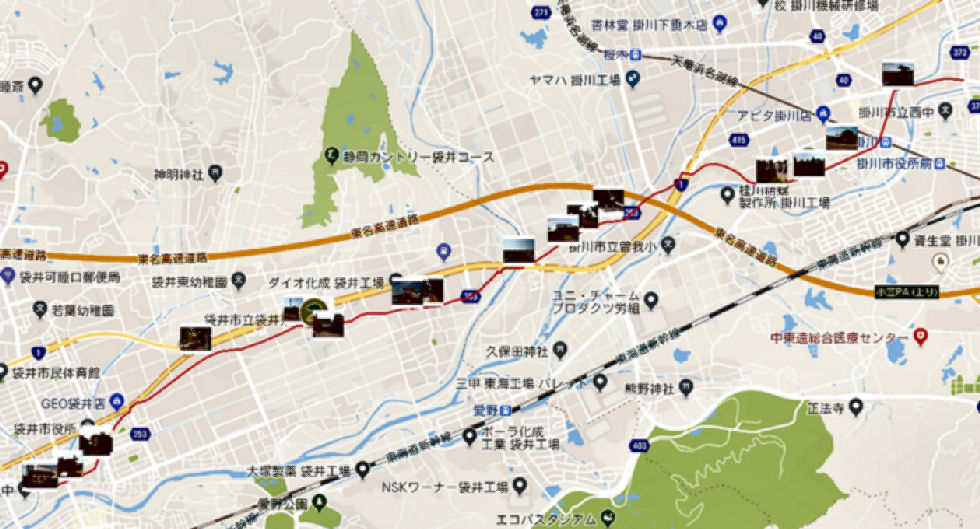 東名の先にはバイパス東名高速をくぐって進むとバイパスの沢田ICにぶつ狩り左手へ迂回。 |