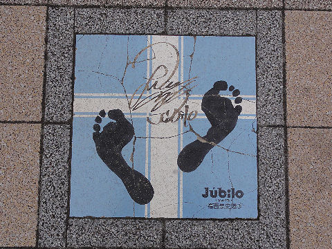 選手の足形とサインサッカーだから足形なのか?ひび割れているものも。 |