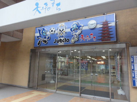 ジュビロ磐田の街マスコットのモニュメントが駅前通りにある。 |