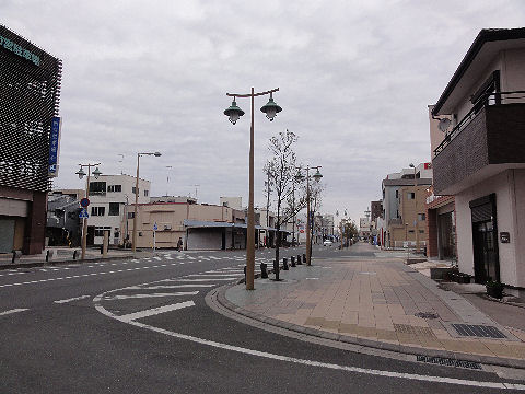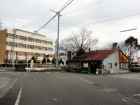 道は大きめの交差点で消えている交差点には商工会館があり区画整理で旧道は消えている。 |