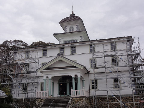 明治初期の学校:見付学校前回は中を見学した、外部を補修工事中。 |
