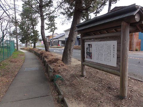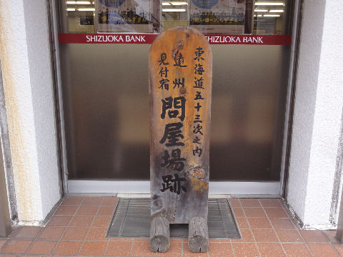 問屋場跡の碑袋井市の新しい標識は見やすい色と表示。 |