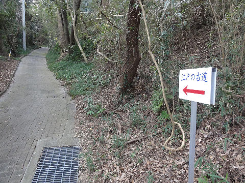 ここから道は幾つもある、江戸の道を行くまっすぐ進むと、鎌倉の道、江戸の道、明治の道などに分かれる。勾配がきついくて明治の道は手前で左折して迂回。 |