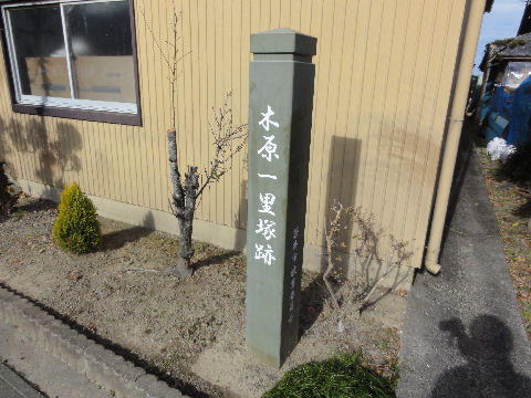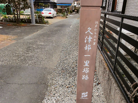 古い距離標識ここが昔は国道一号だったことを示すもの。 |