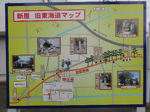 この辺り新屋地区の様子旧街道は斜めで2回交差点で消えている。 |
