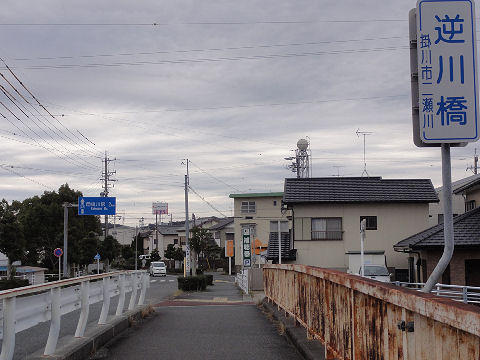 逆川を二瀬橋で渡り市中心部へ二瀬橋交差点で再度右折し橋を越えて進む。 |
