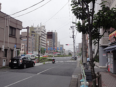 これから進む左手は国道15号線広い道、交通量も多くて信号も多い歩きやすくはない道。 |