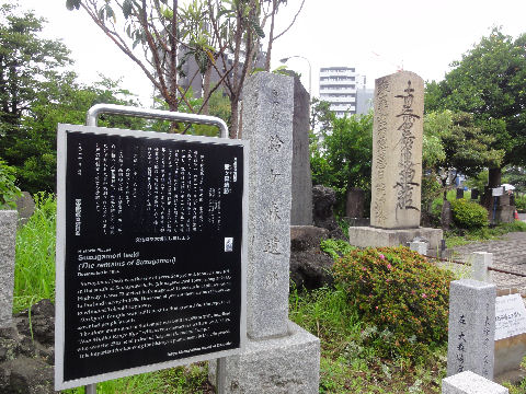 案内板も整備されている江戸から離れた処刑場(高輪から先は江戸の外)にあった幾つかの刑場の一つ。 |