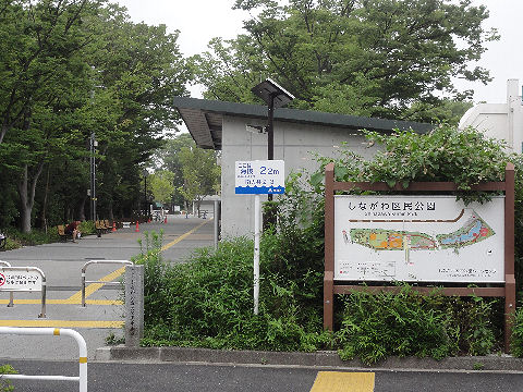 しながわ区民公園海沿い(当時)の細長い土地に公園が続く。海抜2.2mしかない、ほとんど海沿い。 |
