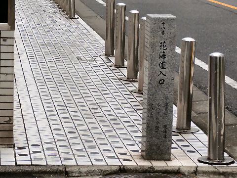花街道入口の石碑緑化運動の新しいもののよう。 |