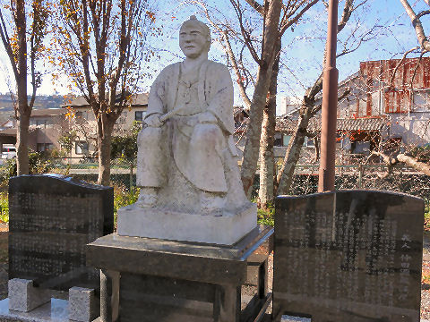 義人・仲田源蔵の像困った人足の窮状を訴えた義人だとか。 |