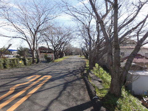 旧堤防?あとの道を進む新堤防は来る名が多く歩きにくい、こちらは桜のトンネルのよう。 |