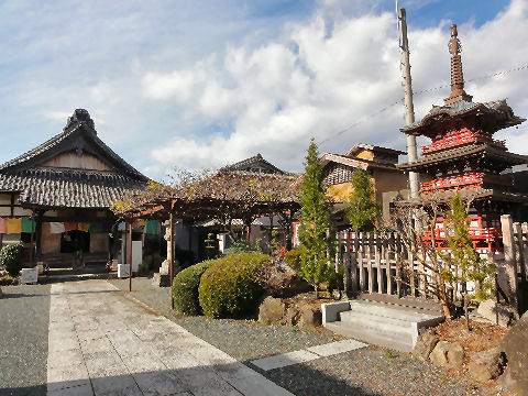 元の道へ戻る途中の高野山の島田別院右手に小さな三重塔が。 |
