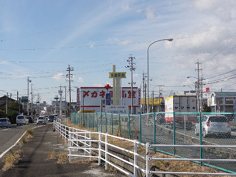 蓬莱橋方向へ右折しアピタへ早目の昼ご飯を食べにアピタへ、この先350mで蓬莱橋だがパス。 |