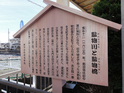 監物川と監物橋水野監物が灌漑用に作った水路で大井川の水を引き入れた。 |