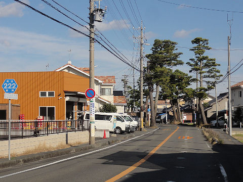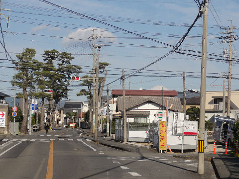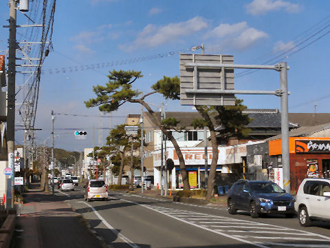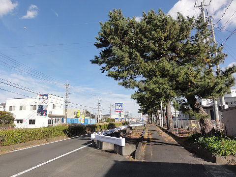 右手に新東海製紙の工場が見えて旧国道へ合流橋から真っすぐの道(旧1号線)へ合流する。 |