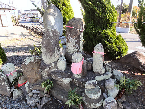 志田の一里塚跡秋葉神社の灯篭と同居。 |