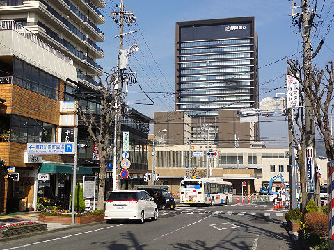 駅前からの道と交差駅前には高層ビルが建っている、最近再開発が進んだよう。 |