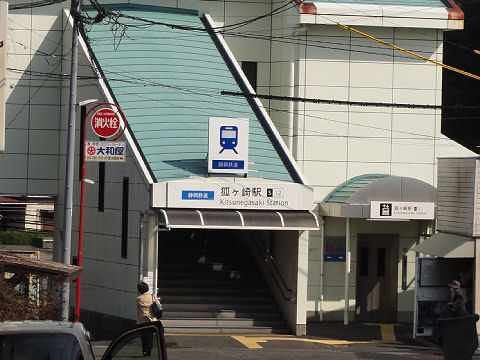 左手には静鉄の狐ヶ崎駅小刻みな駅、多い運転本数で便利な静鉄。 |