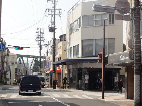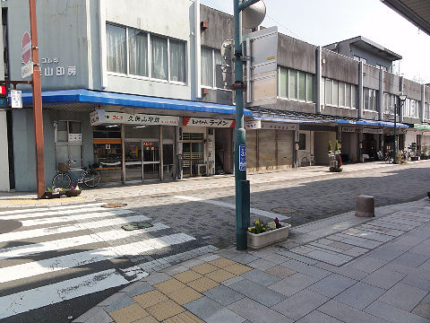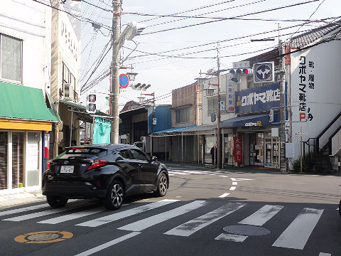 右折して商店街へシャッターの閉まった店が目立つ。 |