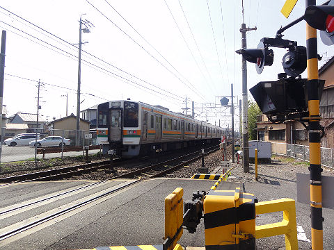 静鉄の踏切を渡る南幹線(東海道)へ出る前に静岡鉄道の踏切を渡るが、ちょうど今月で引退の1503号車が来た。 |