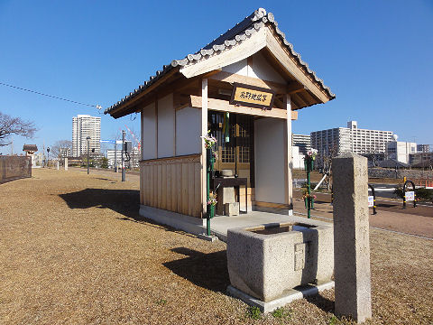 堤防整備で移転した地蔵尊この一帯は川底部分が公園として整備され様子が一変。 |
